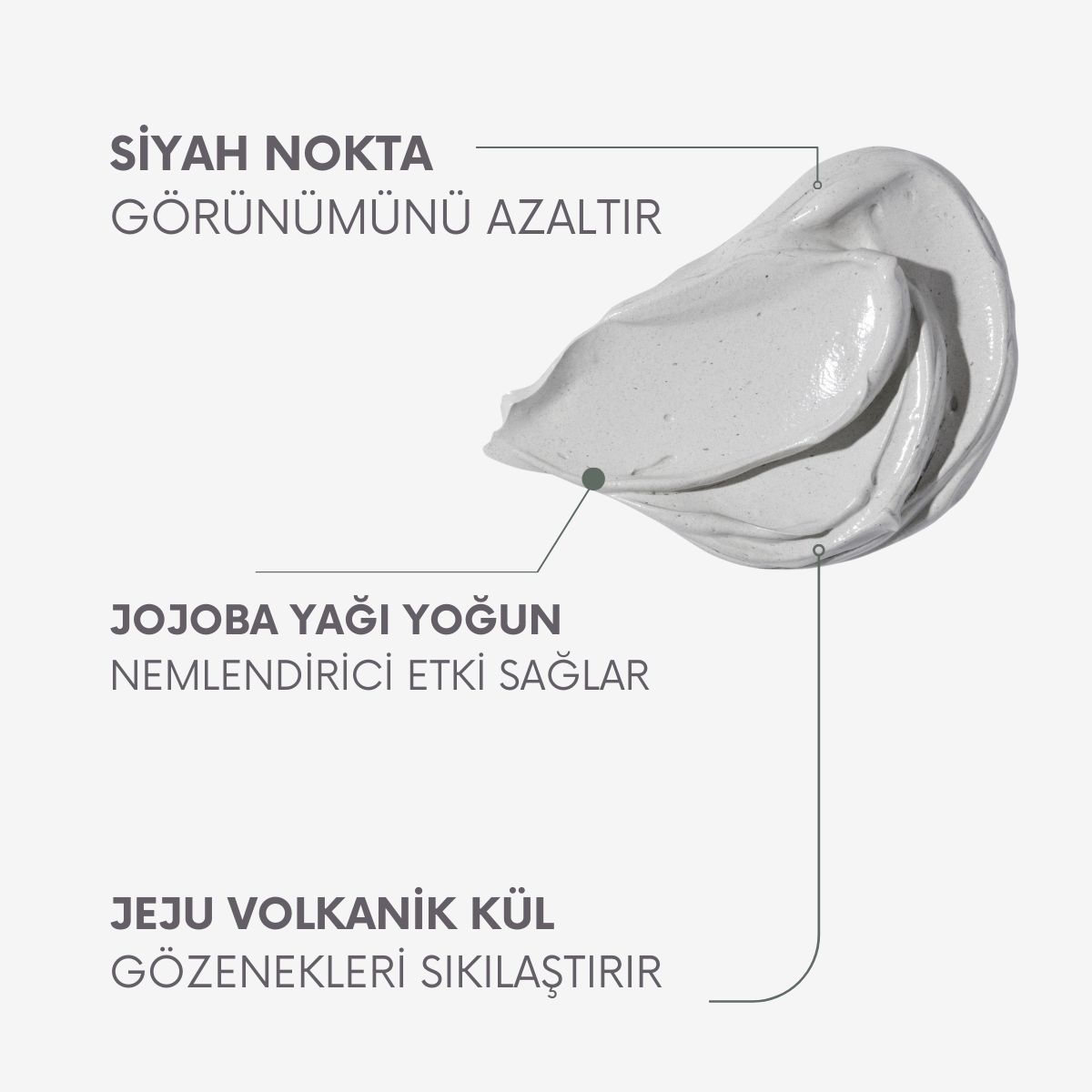 Kore Jeju Adasın’dan gelen Volkanik Ash ile üretilen Jeju Volcanic Ash Gözenek Temizleyici ve Sıkılaştırıcı Maske, cildi temizler ve besler. Ölü hücreleri peeling etkisiyle ciltten uzaklaştırır. Gözeneklerin sıkılaşmasında, siyah noktaların temizlenmesinde, sebum salgısının dengelenmesinde ve cildin yenilenmesinde etkilidir.